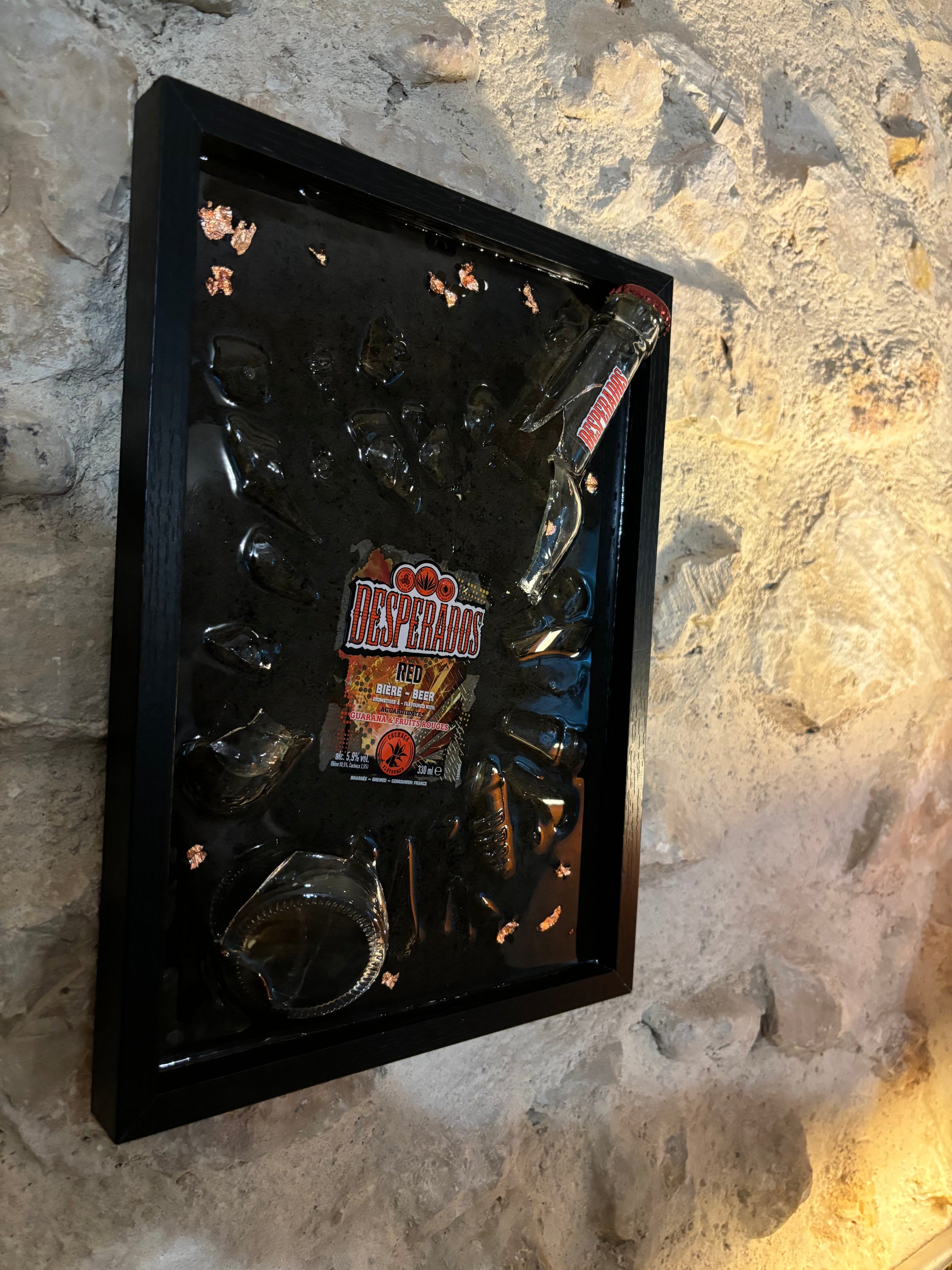 Matériaux : Verre de bouteille Desperados, résine epoxy
